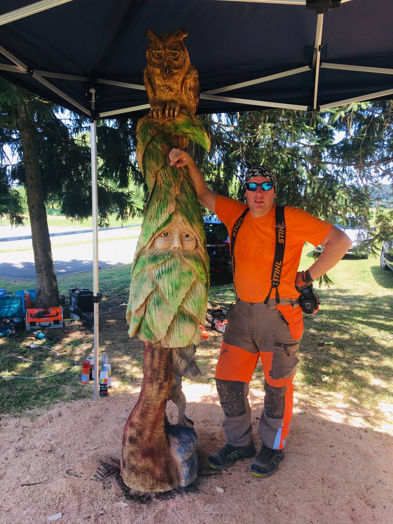 Kettensägen-Schnitzerei, Volkskunst-Schnitzereien, Reliefs, Skulpturen, Brandmalerei, Messerschnitzerei, Blockhausbau und Malerei.